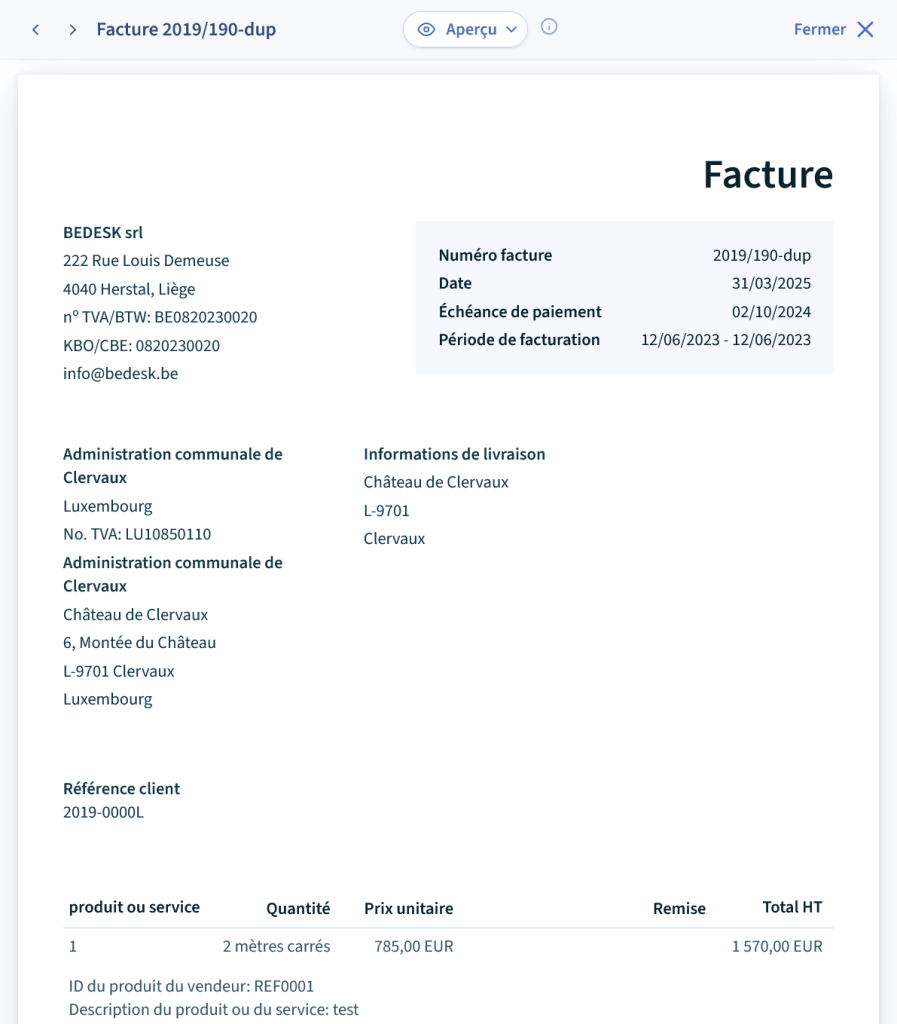 Voici une capture d’écran du visuel proposé par une plateforme de factures électronique largement utilisée :