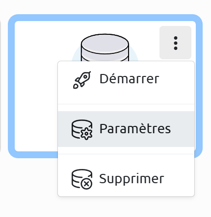 - Choisissez la base de données de votre choix et cliquez sur les 3 petits points en haut à droite. Puis, cliquez sur « Paramètres ».