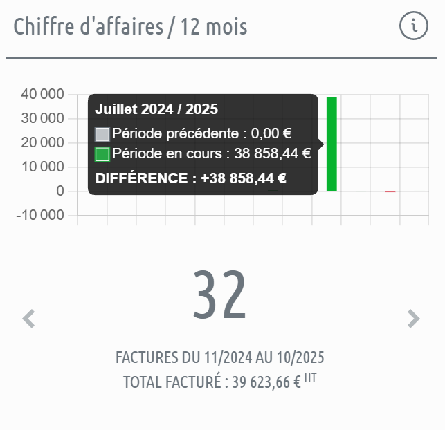 - Une vue détaillée mois par mois pour suivre votre activité dans le temps.