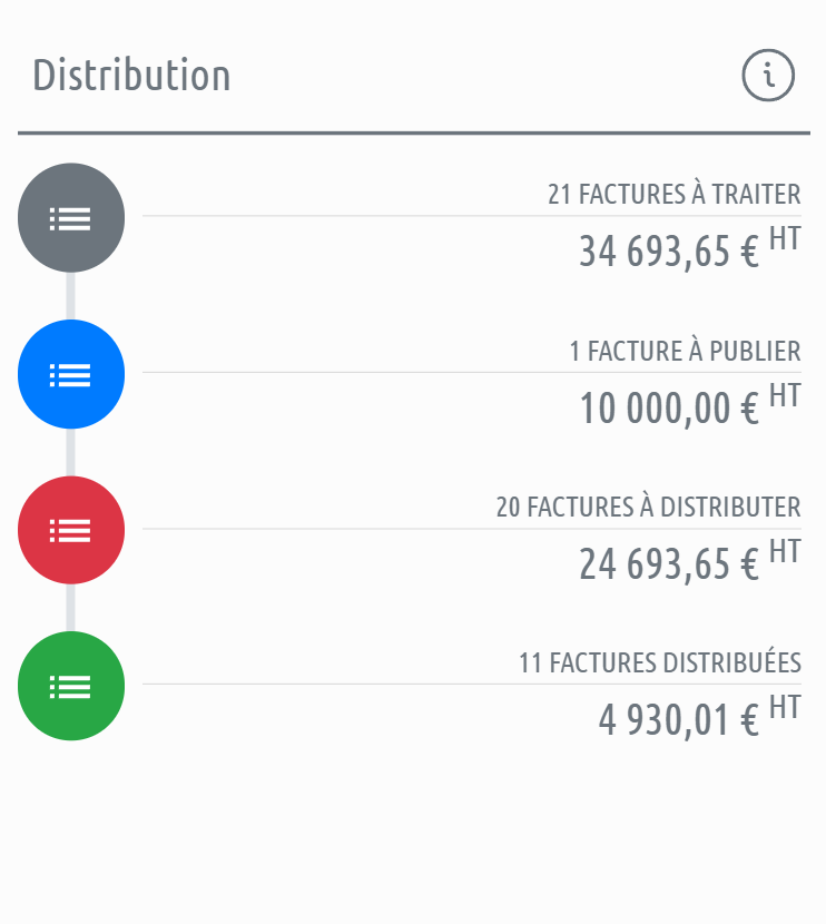 Un tableau synthétique présente le montant cumulé de vos documents selon leur état :