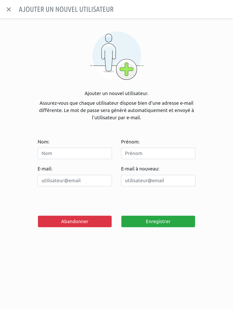 Pour ajouter un nouvel utilisateur supplémentaire, cliquez sur l’icone « + » situé en haut à droite de la liste des utilisateur