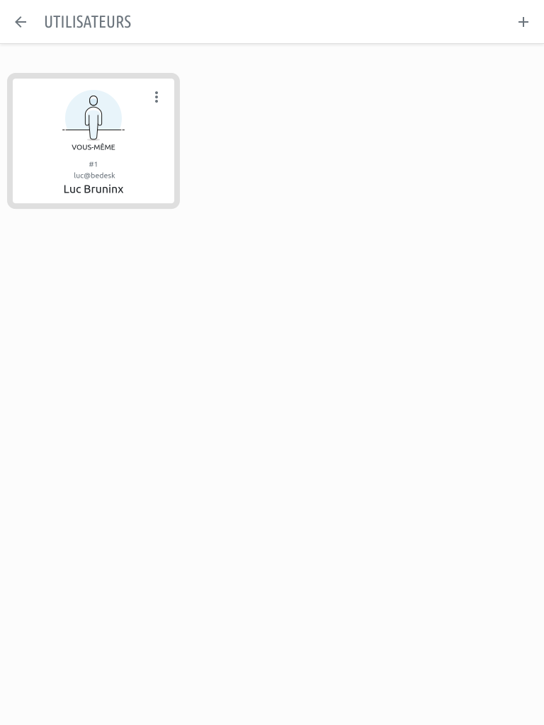 La liste des utilisateurs de la base de données se présente sous la forme d’une liste de cartes. La première correspond toujours à celle de l’administrateur. Par conséquent, si vous n’avez pas encore ajouté d’utilisateurs supplémentaires, vous ne voyez qu’une seule carte : celle qui correspond à votre propre accès.