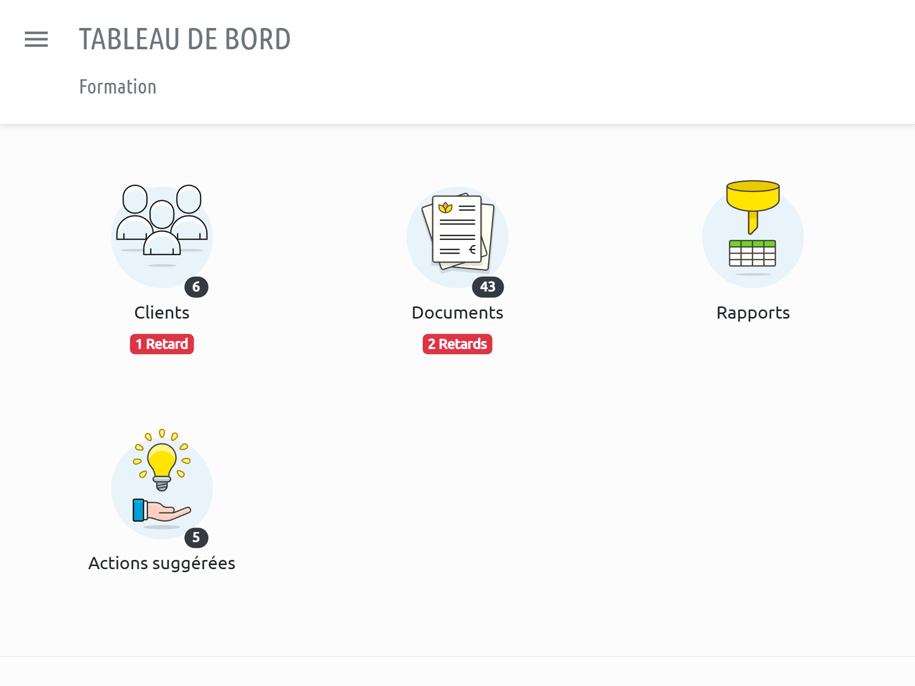 En plus de ces différents onglets, des notifications vous signaleront d’éventuels retards liés à vos documents ou à vos clients.